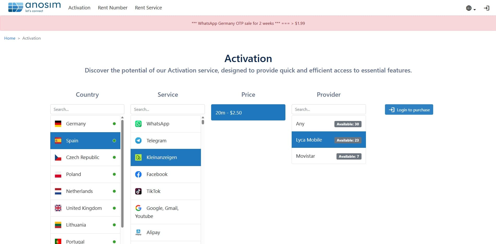 Anosim is your top choice for easy activation solutions and phone number rentals. Anosim's virtual numbers let you safely verify accounts online without showing your own phone number. This is a great way to create many accounts at once, avoid platform limits, and lower the chance of getting banned or blocked.